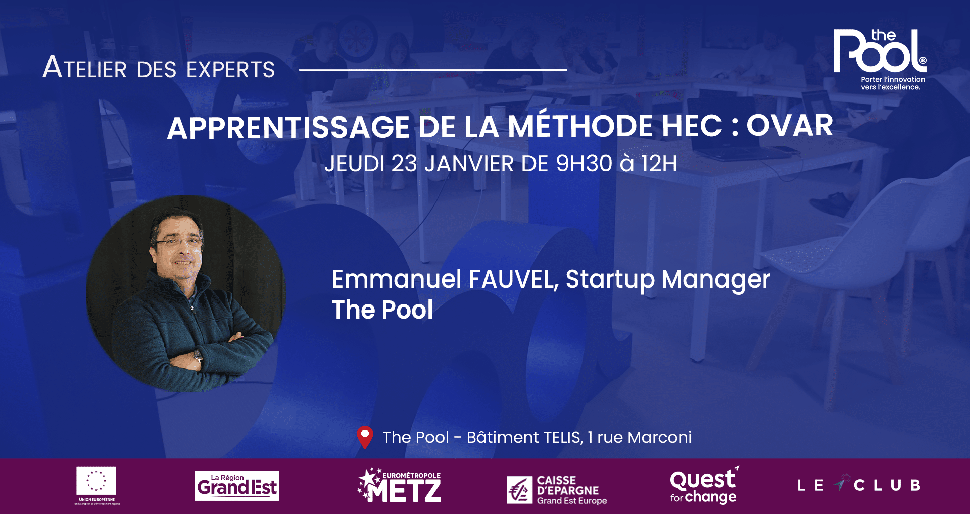 Nous organisons jeudi 23 janvier à partir de 9h30 un Atelier des Experts animé par Emmanuel Fauvel, Startup Manager à The Pool, lauréat du programme entrepreneur de HEC Paris – « Méthode organisationnelle HEC : l’OVAR (objectifs stratégiques et variables d’action)“.