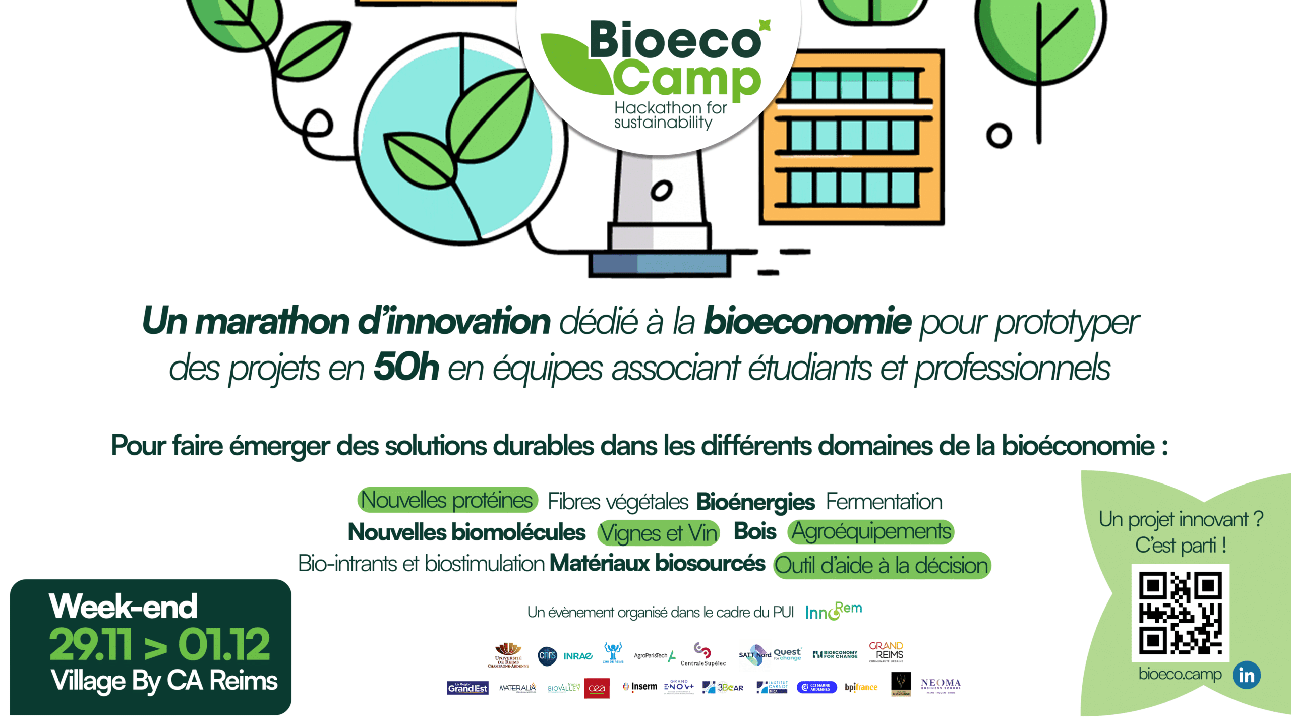 Un hackathon 100% dĂ©diĂ© Ă la bioĂ©conomie dont la 1Ăšre Ă©dition aura lieu le weekend du 29/30 novembre et le 1er dĂ©cembre au Village by CA Reims đ