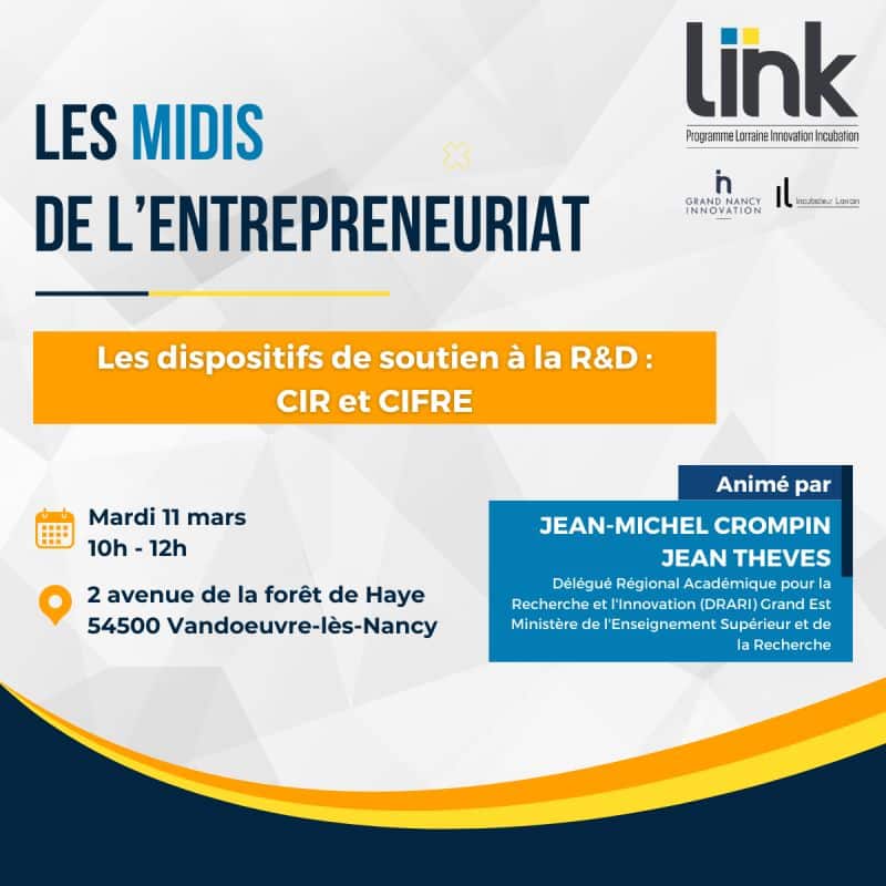 Les Midis de l’entrepreneuriat : Les Dispositifs de soutien à la R&D : CIR et CIFRE