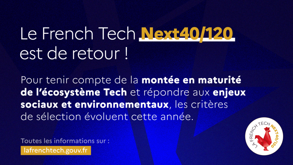 L’appel à candidatures de la promotion 2024 du programme d’accompagnement French Tech Next40/120 est ouvert ! Ce programme de la Mission French Tech vise à accompagner les entreprises les plus prometteuses dans leur développement économique, avec la mise à disposition d’un chargé d’affaires et l’accès à des opportunités privilégiées. Suite aux recommandations du French Tech Finance Partners, les critères de sélection ont été partiellement modifiés afin de tenir compte de la montée en maturité de l’écosystème Tech, de s’adapter au nouveau contexte de financement et de rendre le programme plus accessible aux différents modèles d’innovation. La sélection des French Tech Next40/120 se fera à répartition égale entre un critère de la croissance du chiffre d’affaires et un critère de levées de fonds. L’admission automatique des licornes est supprimée.