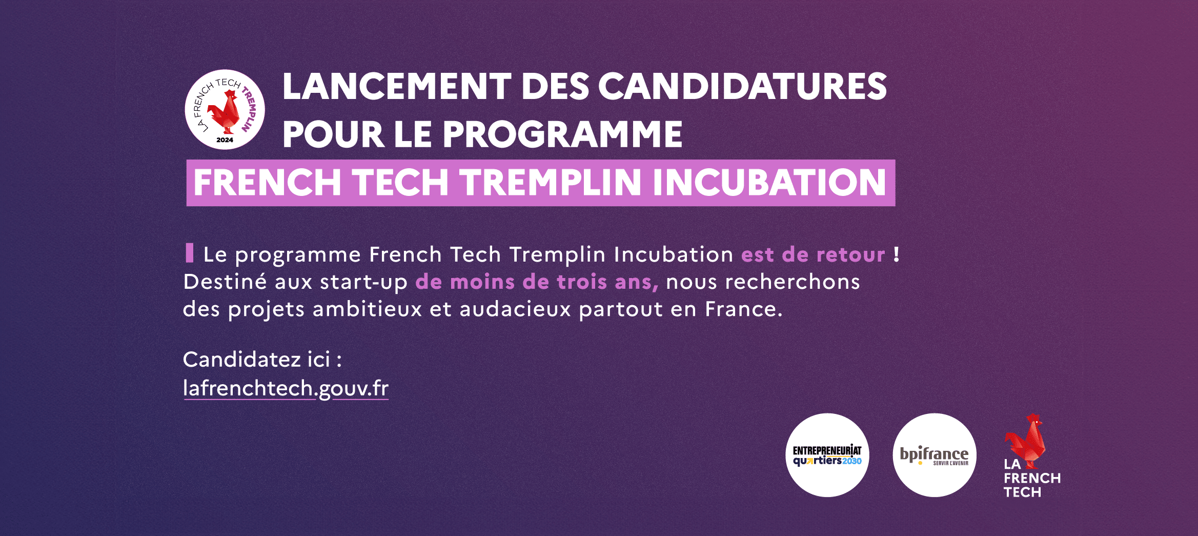 Les candidatures pour rejoindre French Tech Tremplin en tant qu’incubateur sont actuellement closes.